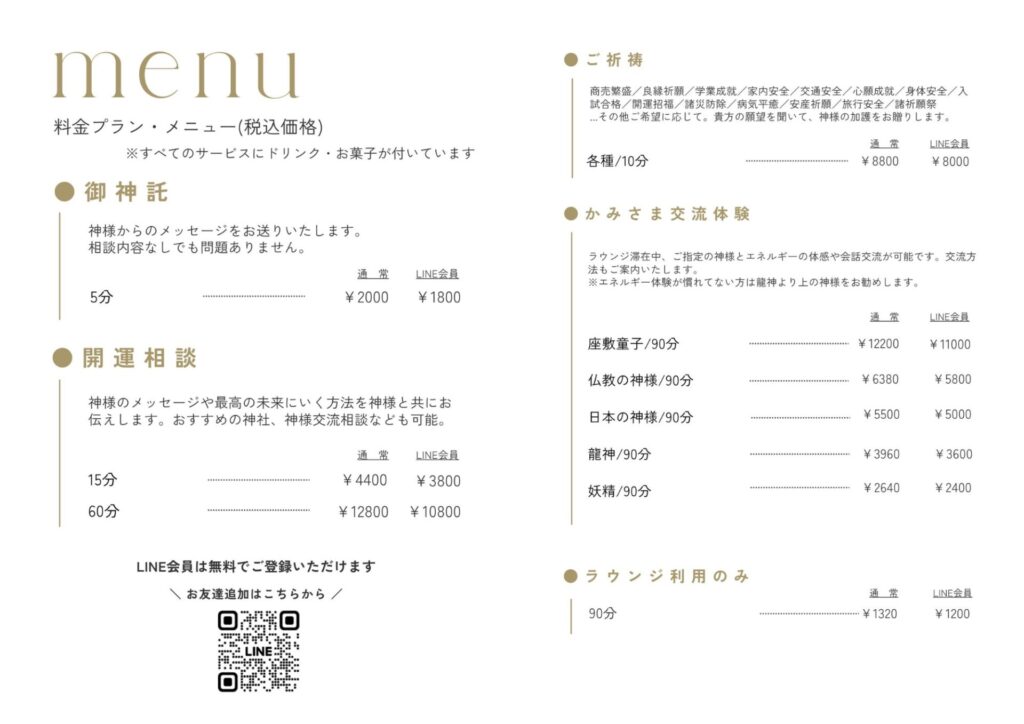 ※ラウンジ滞在せず、サービスのみ依頼も可能です。